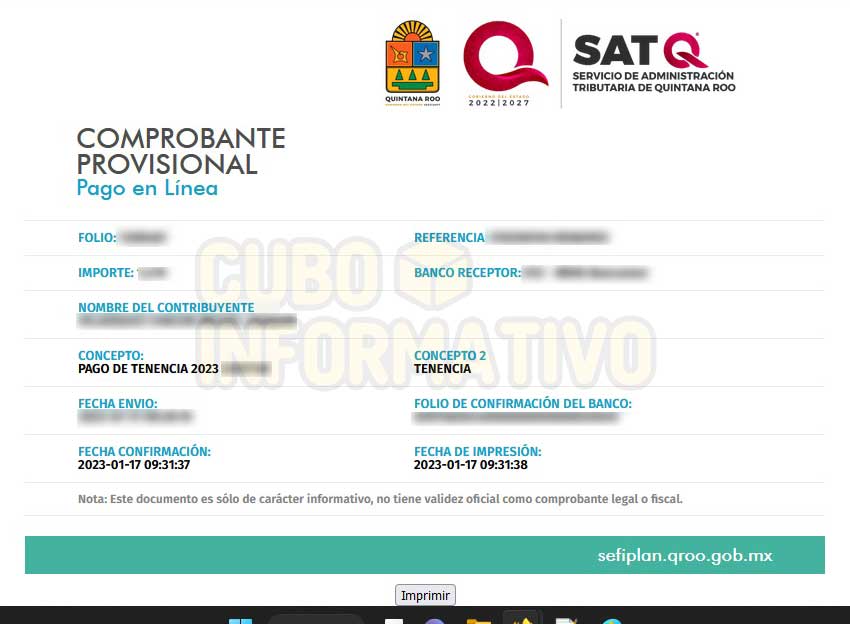 Si el pago fue procesado correctamente se tiene que reflejar el “comprobante provicional online” de pago y el cual tienes que imprimir o bien, guardarlo como un PDF para posteriormente imprimirlo en otro momento.